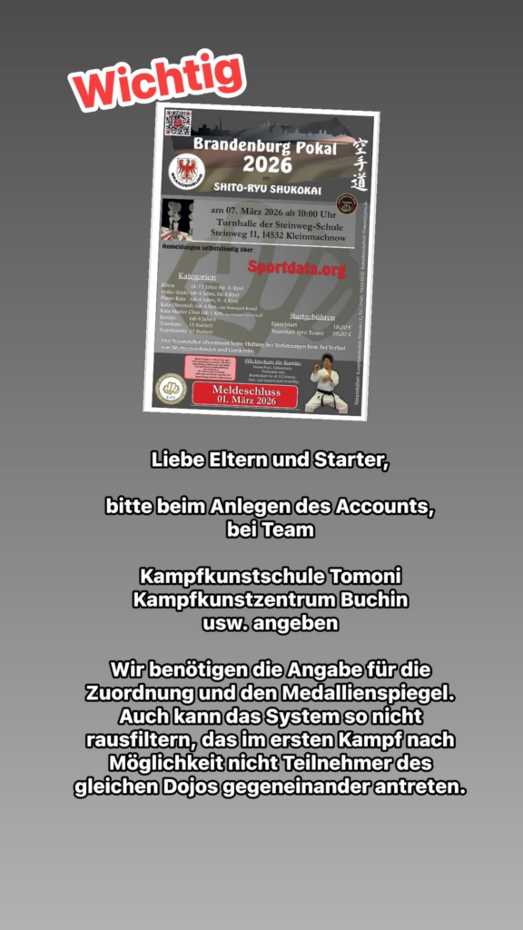 Am 07. März 2026 ist es wieder so weit: Wir laden euch herzlich zum diesjährigen Brandenburg Pokal ein! Ab 10:00 Uhr finden in der Turnhalle der Steinweg-Schule in Kleinmachnow spannende Wettkämpfe für alle Alters- und Leistungsklassen statt.